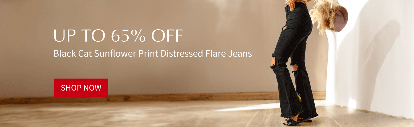 Cat Sunflower Print Distressed Flare JeansSize Chart (CM)Sizes Note:1...