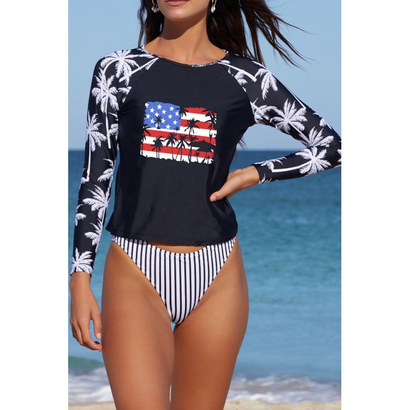 Flag Printed Raglan Sleeve Two-Piece Rash Guard Set