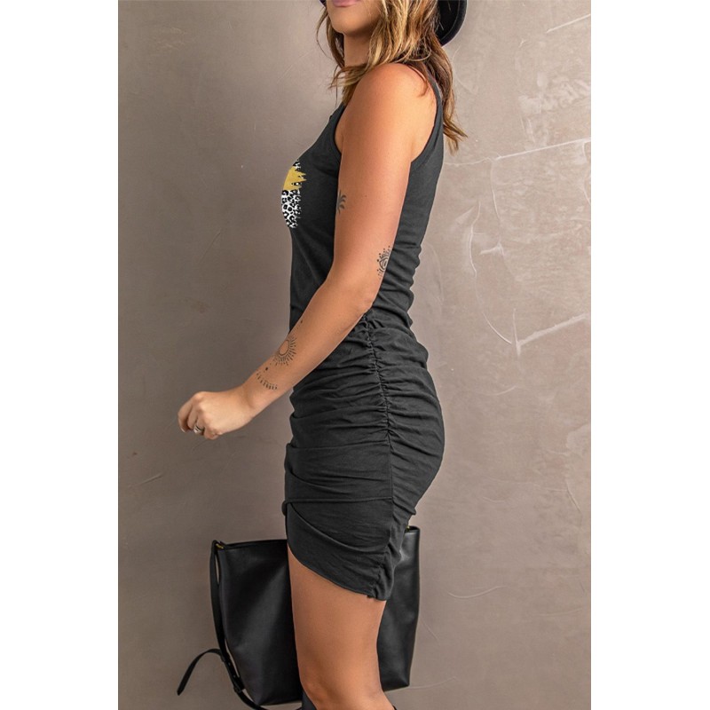 Black Leopard MAMA Graphic Ruched Arch Hem Tank Mini Dress