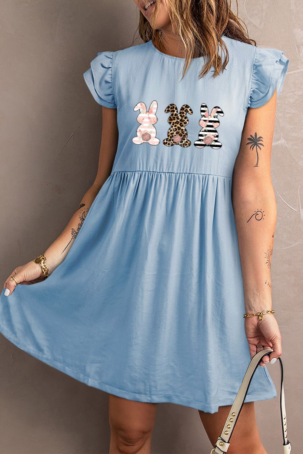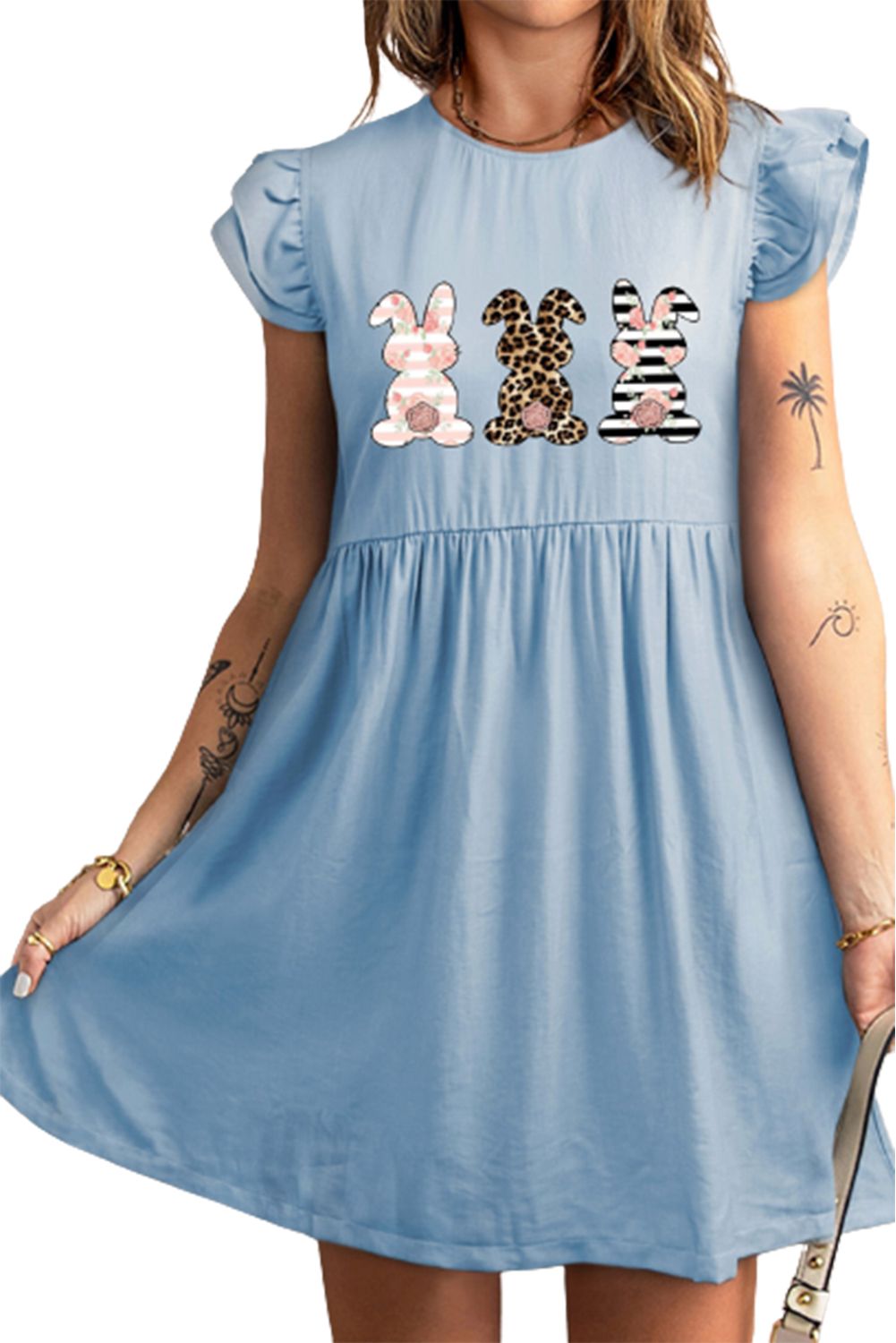 Sky Blue Easter Day Animal Print Ruffle Sleeve Mini Dress