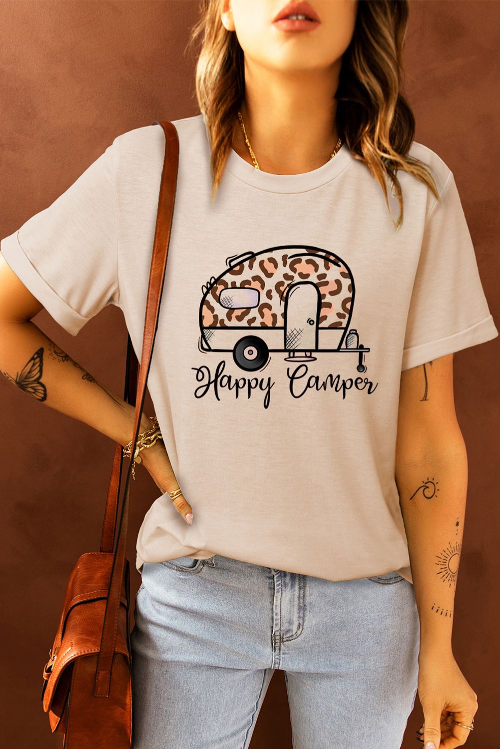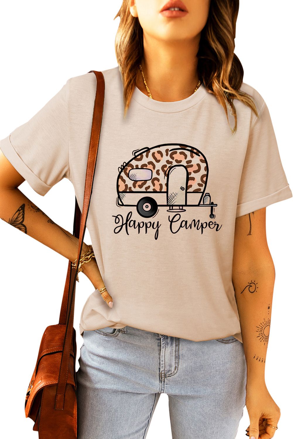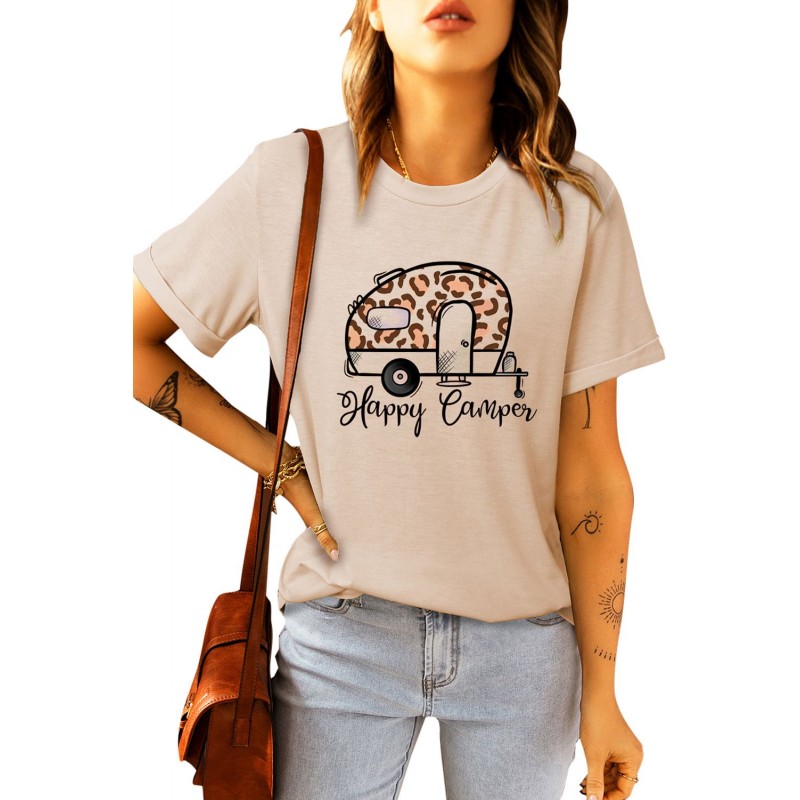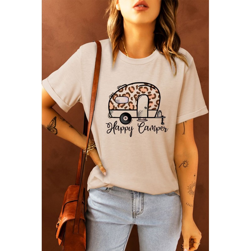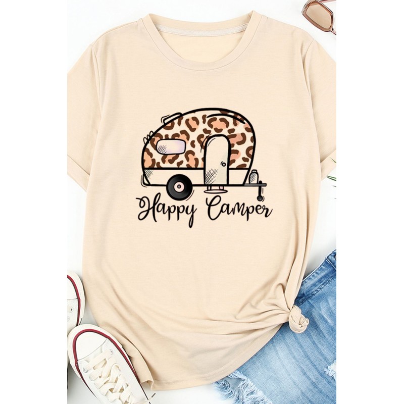 Happy Camper Leopard Car Print Short Sleeve Graphic Tee