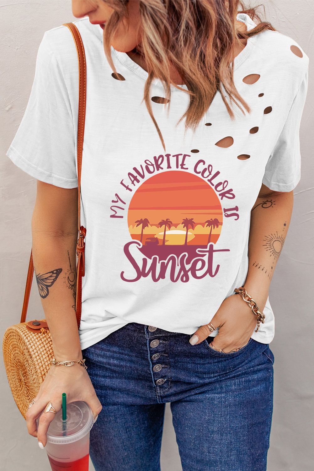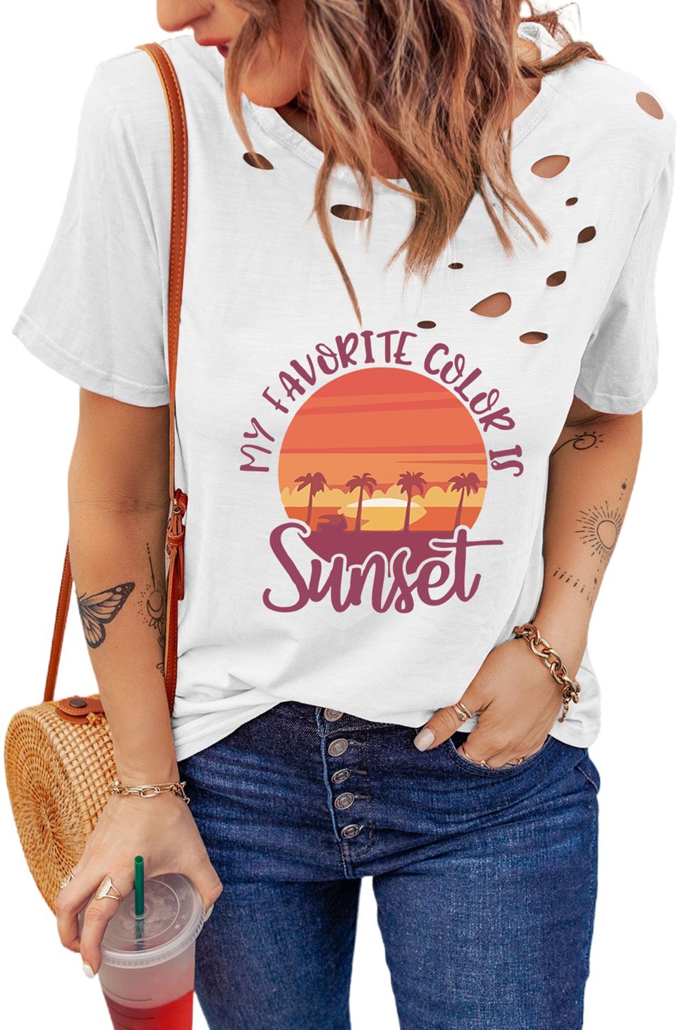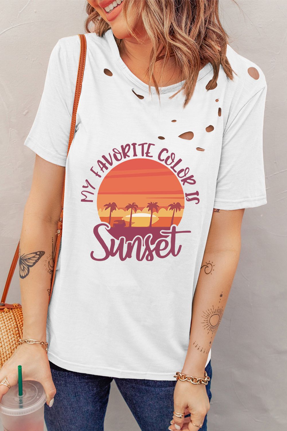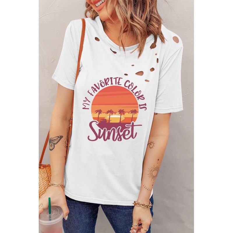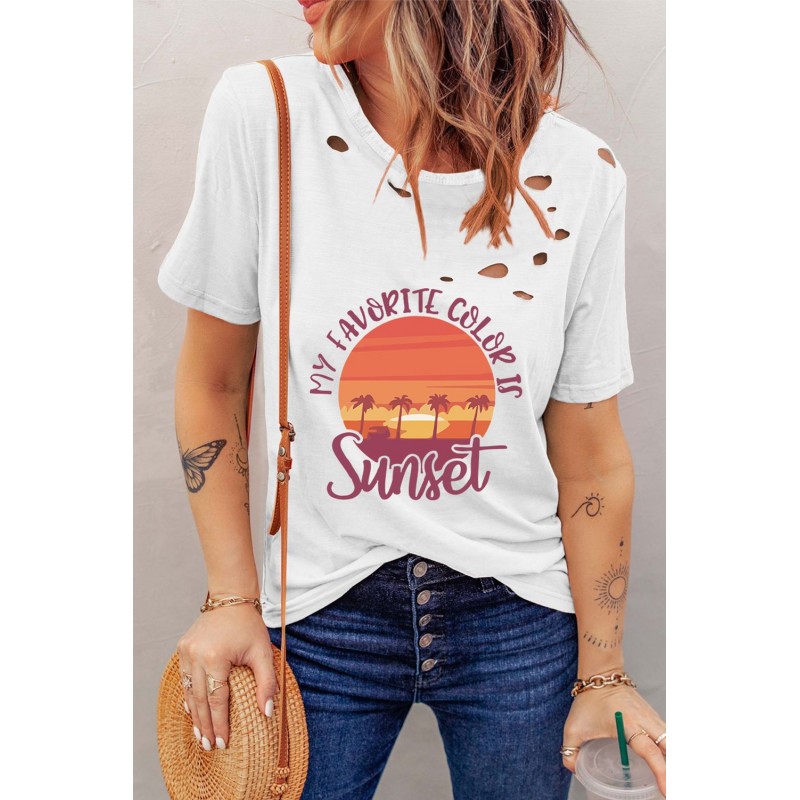 White Distressed MY FAVORITE COLOR IS Sunset Pattern T Shirt